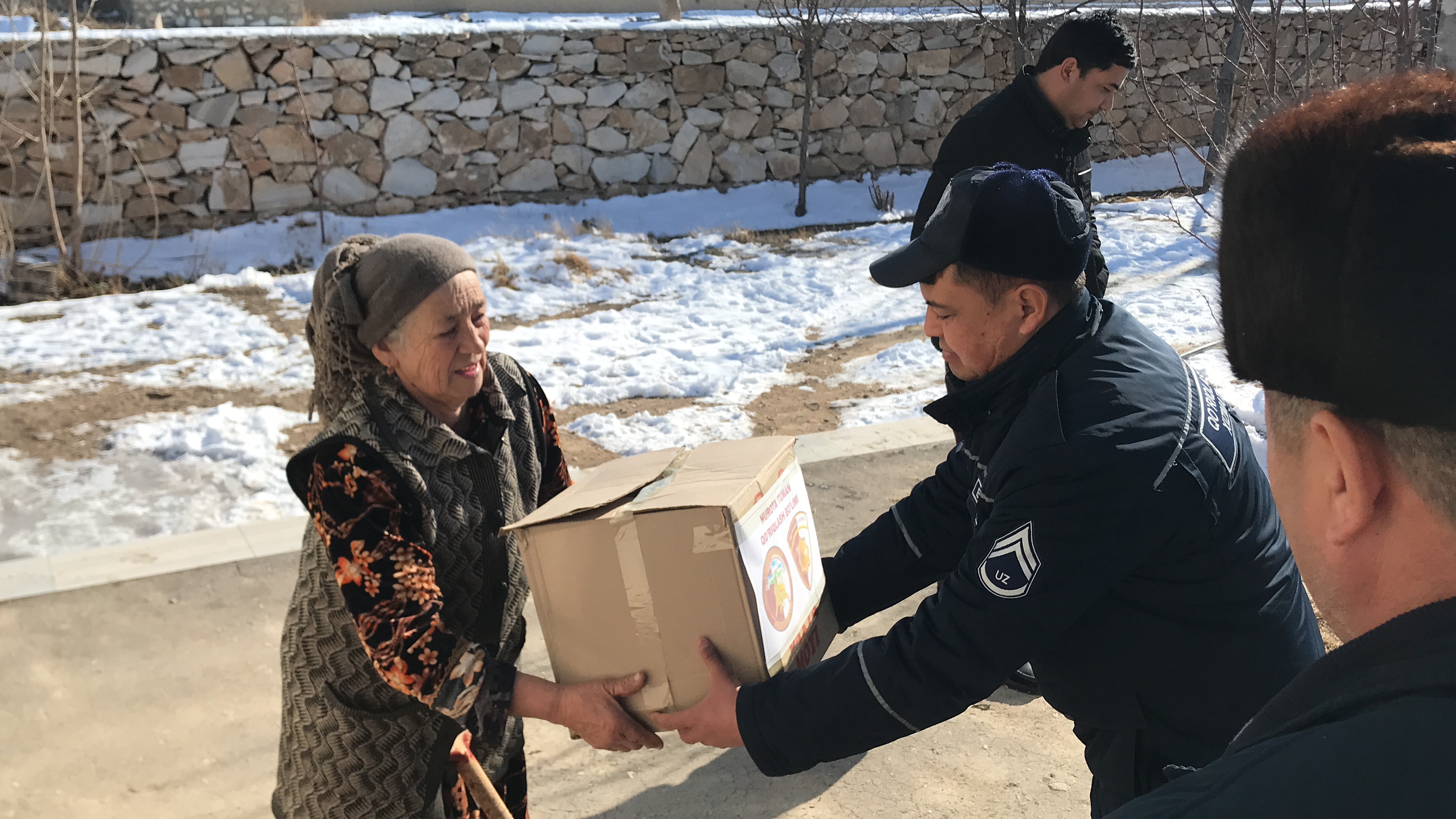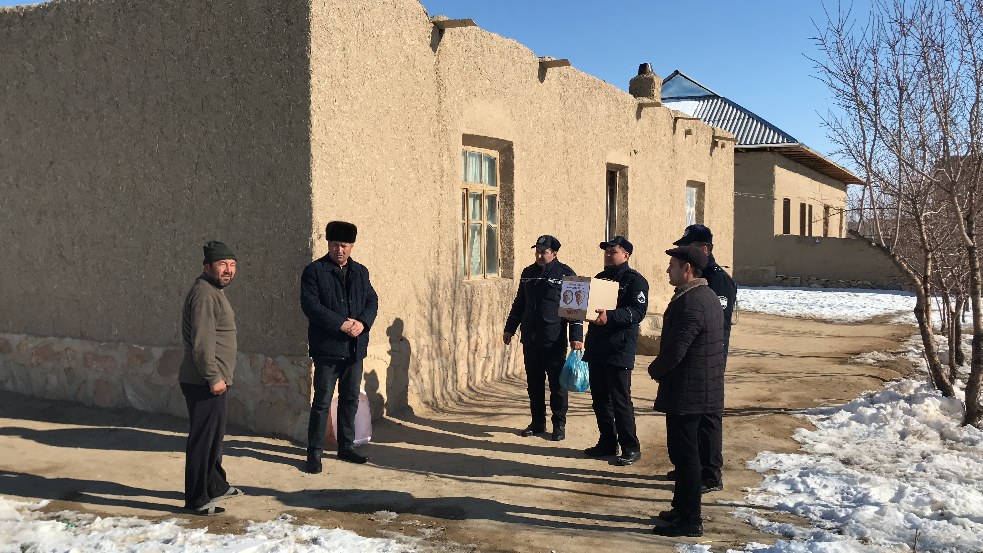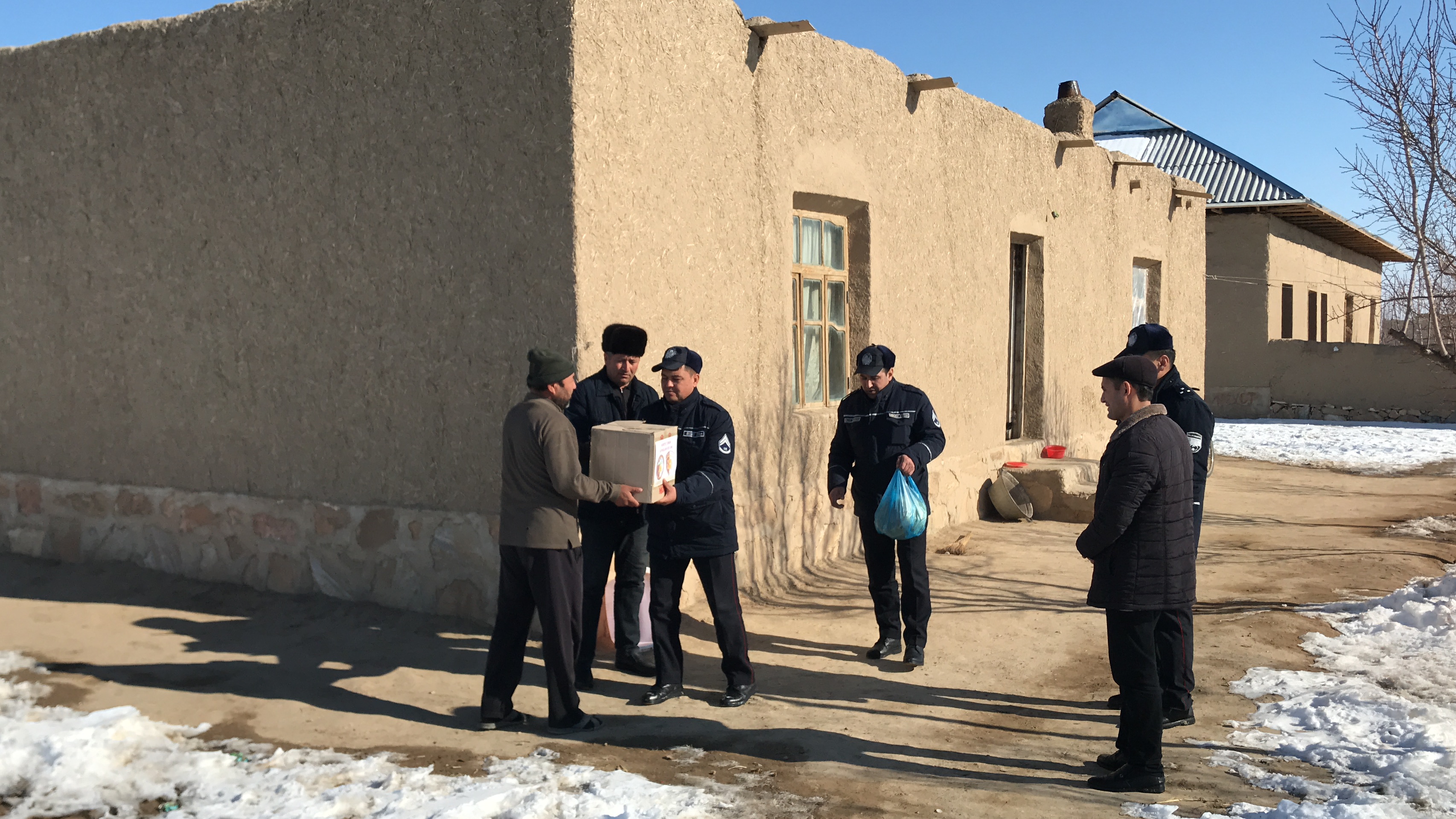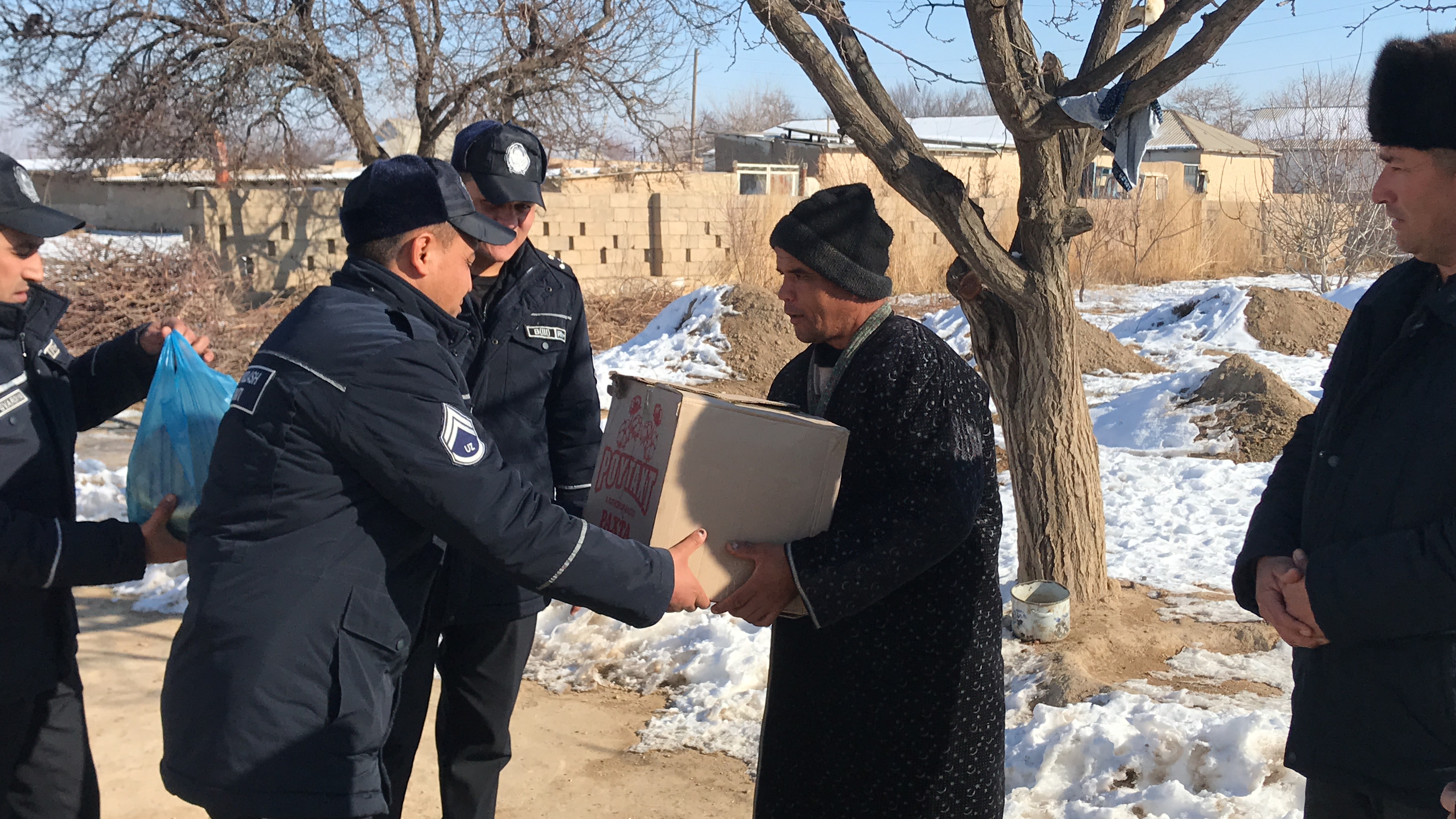 It was distributed 88 liquefied gas cylinders to citizens living in the mahalla Mingchinor, Pakhtakor district. In the areas of responsibility, in order to ensure the safety of citizens in the markets, avenues and parks, and to prevent the occurrence of accidents during their movement, the military personnel cleaned the footpaths and internal corridors of snow and sprinkled sand and salt mixtures.
