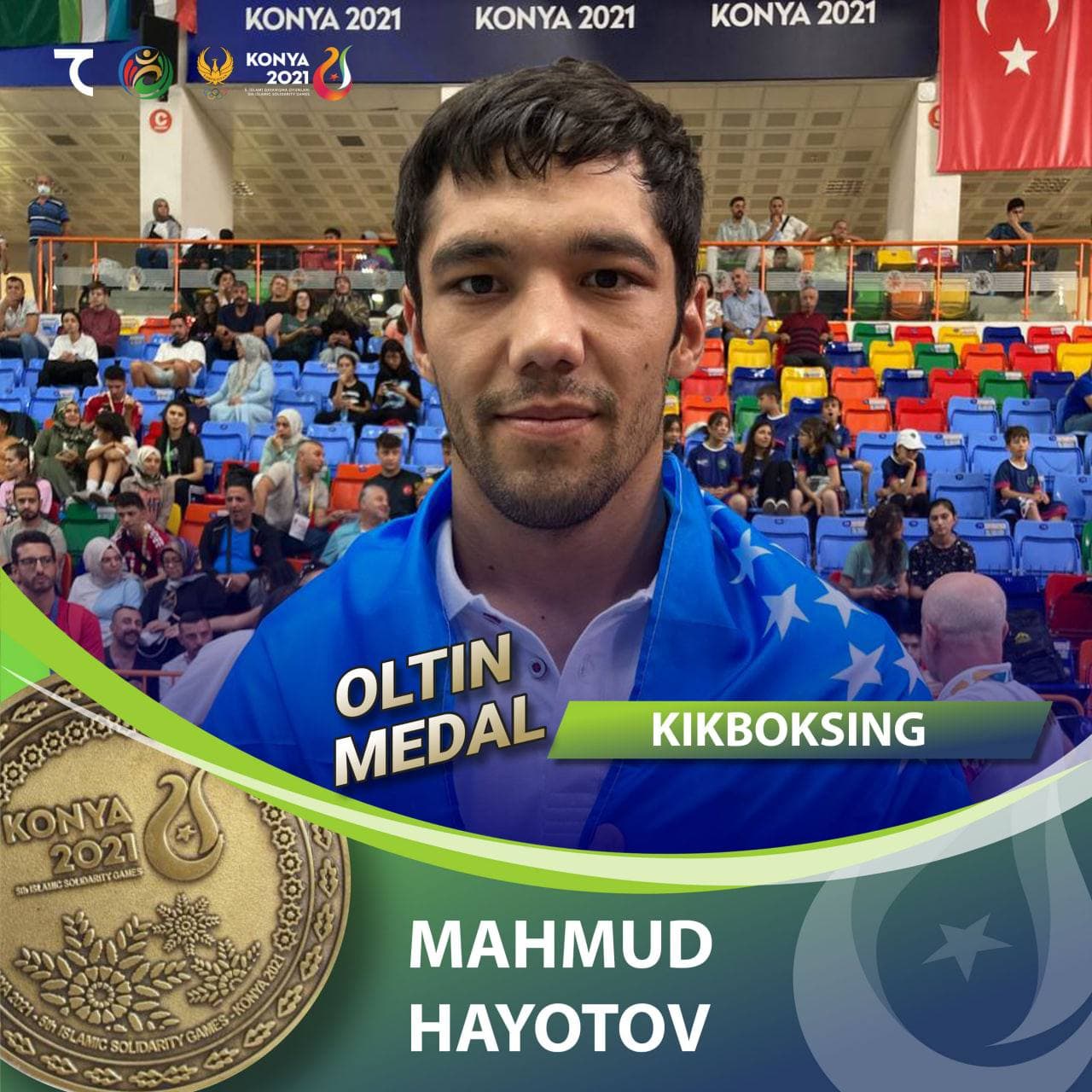 -1 ta oltin medal Mahmud Xayotov kikboksing yo‘nalishi bo‘yicha;