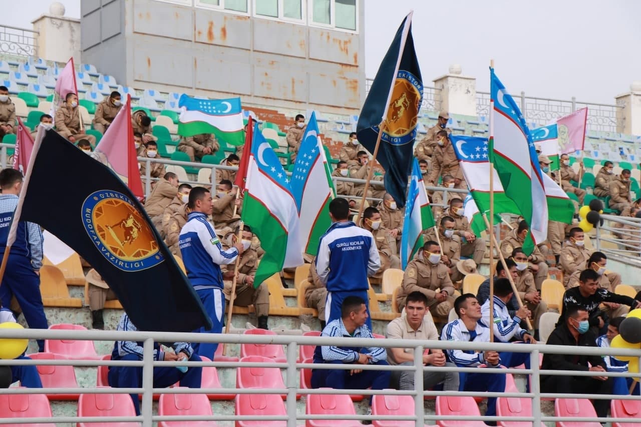Oliy harbiy ta’lim muassasalari o‘rtasida ilk marotaba tashkil etilgan sportning “Beshkurash” bo‘yicha musobaqasida kursantlar: