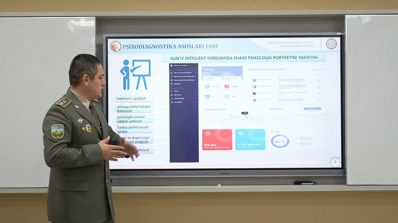 Mamlakatimizda amalga oshirilayotgan keng kо‘lamli islohotlar doirasida aholining tinch va osoyishta hayotini ta’minlashga alohida e’tibor qaratilmoqda. Ayniqsa, jahonda kuchayib borayotgan turli xavf-xatar va ziddiyatlar, jamoat xavfsizligiga tahdidlar oshib borayotgan bugungi davr mazkur masalaning naqadar dolzarb ekanligini kо‘rsatmoqda. Yuqoridagi tahdid va xavf-xatarlarga qarshi tura olishda jamoat xavfsizligini ta’minlash sohasidagi mutaxassis-kadrlarning bilim, kо‘nikma va malakalari muhim ahamiyat kasb etadi. Shu boisdan О‘zbekiston Respublikasi Jamoat xavfsizligi universitetida kursant-tingovchilarning bilim, kо‘nikma va malakalarini rivojlantirishda jamoat xavfsizligiga tahdid va xavf-xatarlarning xususiyatlari inobatga olinmoqda. Xususan, “Xizmat faoliyatini tarbiyaviy-psixologik ta’minlash” kafedrasi tomonidan bakalavr va magistratura bosqichi kursant-tinglovchilari uchun psixologiya fanlarini о‘qitishda profayling usulini qo‘llash hamda psixologik bilimlarni o‘zlashtirishda sun’iy intellekt imkoniyatlaridan foydalanishga alohida ahamiyat qaratilmoqda. Jamoat xavfsizligi universiteti “Xizmat faoliyatini tarbiyaviy-psixologik ta’minlash” kafedrasi tomonidan Universitet Ilmiy-amaliy tadqiqotlar markazi bilan hamkorlikda “Psixologiya fanlarini о‘qitishda profayling usuli va sun’iy intellekt imkoniyatlaridan foydalanish” mavzusida amaliy mahorat tashkil etildi. Mahorat darsida “Xizmat faoliyatini tarbiyaviy-psixologik ta’minlash” kafedrasi professor-о‘qituvchilari, “Xizmat faoliyatini tarbiyaviy-psixologik ta’minlash” bakalavr yо‘nalishi, “Tarbiyaviy-psixologik ta’minlashning qо‘mondonlik-shtab faoliyati” magistratura mutaxassisligi kursant-tinglovchilari ishtirok etishdi. Dastlab kursant-tinglovchilarga yolg‘onni aniqlashda qo‘llaniladigan yolg‘on detektori (poligraf) uskunasidan xizmat faoliyatida foydalanish hamda uning imkoniyatlari yuzasidan kо‘rgazmali-mahorat darsi о‘tkazilib, poligrafdan foydalanishda e’tibor qaratiladigan muhim jihatlarga alohida e’tibor qaratildi. Poligraf bu – test o‘tkazis vaqtida odam organizmining fiziologik holati haqida ma’lumot olish uchun mo‘ljallangan mahsus uskuna hisoblanadi. Uskunadan jinoyatchi va gumonlanuvchilarni so‘roq qilish, xizmat tekshiruvlarini o‘tkazishda, shuningdek, nomzodlarni saralash, tanlash, lavozimga qo‘yishda foydalanish xizmat faoliyatini samaradorligini oshirishga xizmat qiladi. Poligraf uskunasidan bugungi kunda dunyo va mamlakatimiz maxsus kuch tuzilmalarida keng foydalaniladi va uskunani ishlatishni muayyan talablari mavjud va ularga qat’iy amal qilish shaxs haqida olingan ma’lumotlarning ishonchliliga bevosita ta’sir kо‘rsatadi. Mahorat darsining ahamiyatli jihati shundaki, bugungi zamonaviy ta’lim standarlariga muvofiq kadrlarni kuchli bilim va ko‘nikma bilan birgalikda amaliy tajribalar bilan qurollanirish maqsadida aynan bo‘lajak ofitserlar(kursant-tinglovchi)larni poligrafda olingan ma’lumotlarni obyektiv psixologik tahlil qilishga o‘rgatishdan iborat bo‘lmoqda. Mahorat darsining keyingi qismida kursant-tinglovchilar bilan “Xizmat faoliyatini tarbiyaviy-psixologik ta’minlash” kafedrasi professor-о‘qituvchilari tomonidan “Psixologik profayling” va “Fanlarni o‘qitishda sun’iy intellekt imkoniyatlaridan foydalanish” mavzularida ko‘rgazmali mashg‘ulot tashkil etildi. Ma’lumki, bugungi kunda turli sohalarda sun’iy intellekt texnologiyalaridan samarali foydalanish borasida shiddatli rivojlanish tendensiyalari kuzatilmoqda. Xususan, oliy ta’limda o‘quv jarayonlariga sun’iy intellekt texnologiyalarini joriy qilish hamda undan foydalanish uchun qulay shart-sharoitlar yaratish, mamlakatimizni sun’iy intellekt texnologiyalaridan faol foydalanuvchi dunyoning yetakchi davlatlari qatoriga kirishiga erishish masalalariga alohida ahamiyat qaratilmoqda. Bu borada, О‘zbekiston Respublikasi Jamoat xavfsizligi universitetida ham ta’lim jarayoniga sun’iy intellekt texnologiyalarini keng qо‘llash borasida ishlar jadal sur’atlarda amalga oshirilmoqda. Xususan, Universitet “Xizmat faoliyatini tarbiyaviy-psixologik ta’minlash” kafedrasi tomonidan mutaxassislik fanlarini о‘qitishda sun’iy intellekt imkoniyatlaridan samarali foydalanish choralari kо‘rilmoqda. Sun’iy intellekt yordamida shaxs psixologik portretini yaratish, kognitiv xususiyatlarni о‘rganish, axborot-psixologik xavfsizlikni ta’minlash, psixologik xizmat kо‘rsatish sifatini oshirish, psixologik ma’lumotlarni tahlil qilish masalalari bunga misol sifatida kо‘rsatish mumkin. Mahorat darsining keying “Psixologik profayling” bosqichida “profayling” usulini jamoat xavfsizligini ta’minlash bo‘lajak ofitserlari xususan, psixolog mutaxassislar uchun zarurati, uni qo‘llash bo‘yicha jahon tajribasi va xizmat faoliyatidagi ahamiyati xususida so‘z bordi. Profayling bu– shaxsning tashqi koʻrinishi, noverbal, verbal va paraverbal hatti-harakatlariga ko‘ra, “hozir va shu yerda” tamoyili asosida amalga oshirilishi mimkin bo‘lgan jinoiy xatti-harakatlarni oldindan baholash imkoniyatini beruvchi usul hisoblanadi. Bunda xulqdagi eng koʻp axborot beruvchi maxsus belgilar, xususiyatlar tahlil qilinishi asosida shaxs xatti-harakatlarini baholash va bashorat qilish imkoniyati yuqori hisoblanadi. Mahorat darsining yakunlovchi qismida huquqbuzarlik yoki jinoyat sodir etishga shubhali shaxslarni aniqlashda profayling usulidan foydalanish masalalariga bag‘ishlangan amaliy mashg‘ulot tashkil etilib, kursant-tinglovchilar mazkur mavzu yuzasidan immitatsion harakatlarni bajarib kо‘rishdi. О‘tkazilgan mahorat darsi va amaliy mashg‘ulotlar kursant-tinglovchilarning psixologiya fanlarini о‘qitishda profayling usuli va sun’iy intellekt imkoniyatlaridan foydalanishga doir ham nazariy, ham amaliy bilim, kо‘nik hamda malakalarining yanada oshishiga xizmat qilg