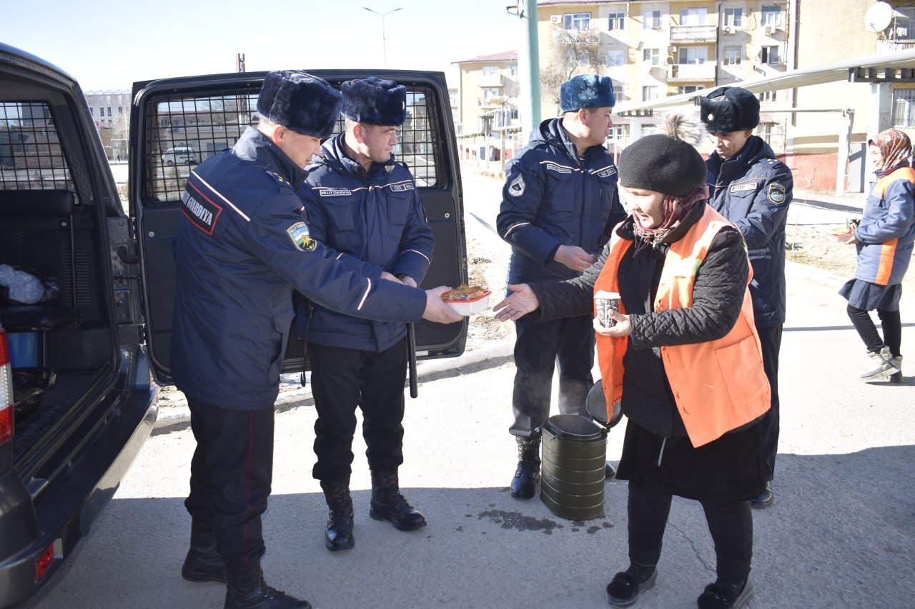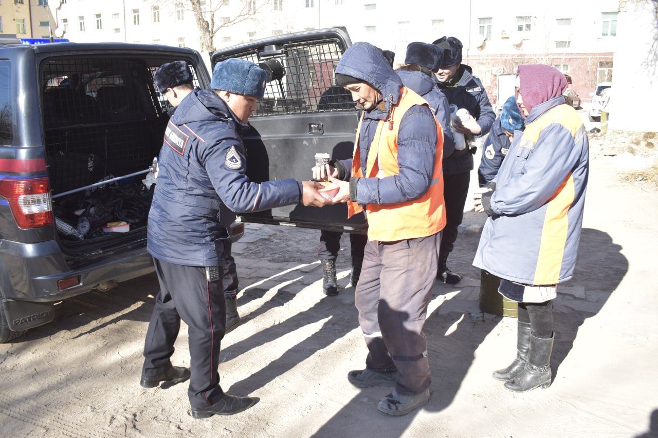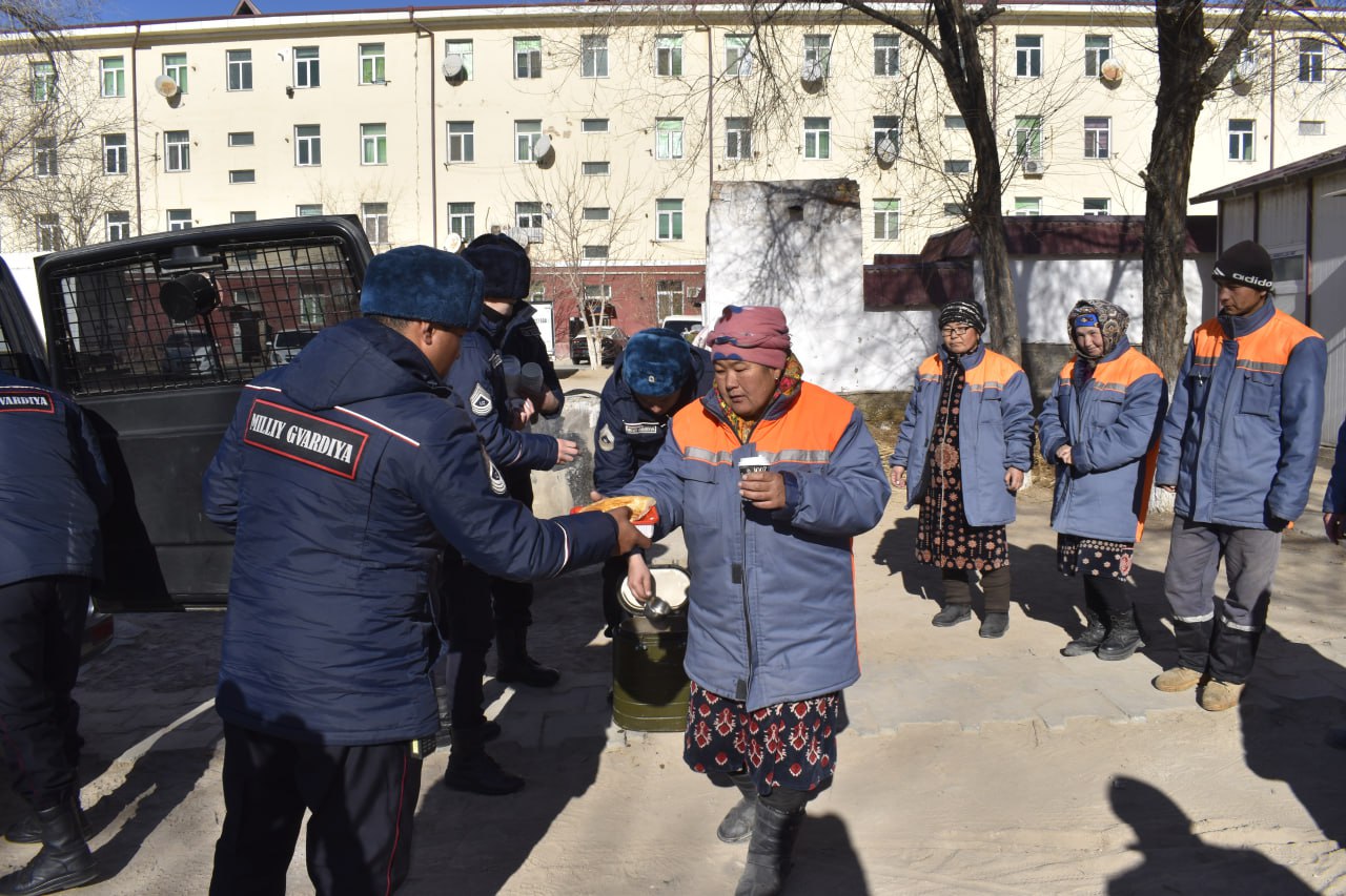 Also, in order to make heat and safe conditions for the population, as well as to provide assistance to people in need of social protection, charity events are being organized on the ground. On January 18 of this year, employees of the improvement department, who are serving day and night in the city of Nukus to preserve the cleanliness of the city, were closely assisted and hot dishes were distributed to them for lunch.