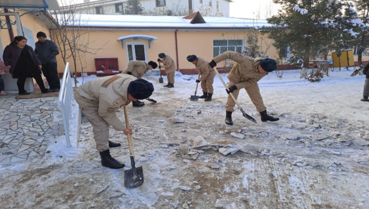 It was distributed 88 liquefied gas cylinders to citizens living in the mahalla Mingchinor, Pakhtakor district. In the areas of responsibility, in order to ensure the safety of citizens in the markets, avenues and parks, and to prevent the occurrence of accidents during their movement, the military personnel cleaned the footpaths and internal corridors of snow and sprinkled sand and salt mixtures.