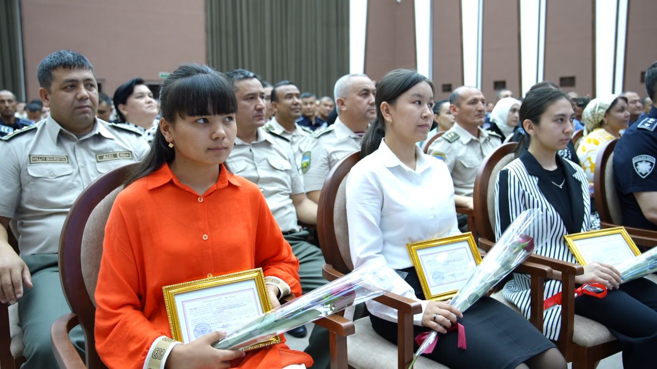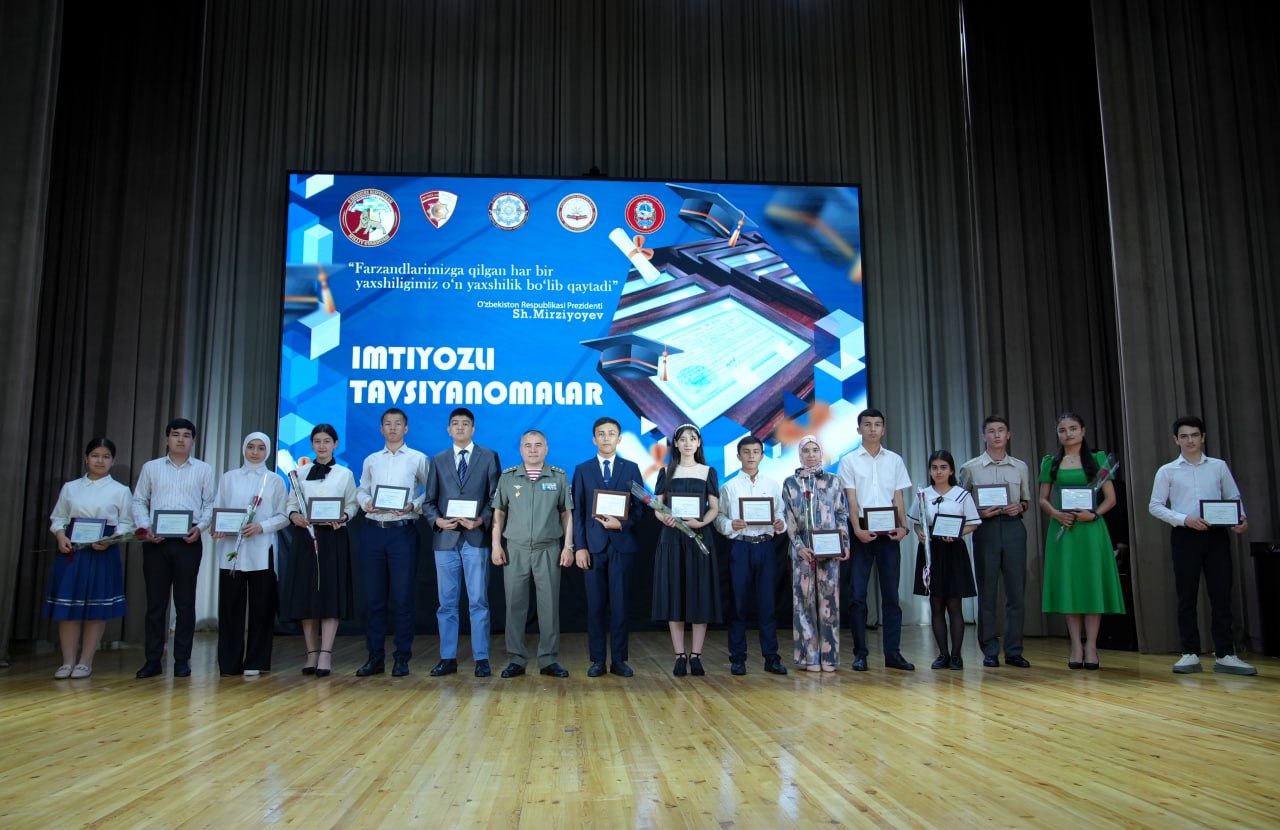 Shundan so‘ng, namunali xizmat qilayotgan va soha ravnaqi uchun o‘zining munosib hissasini qo‘shib kelayotgan fidoyi xodimlar, shu bilan bir qatorda, xizmat burchini bajarish chog‘ida halok bo‘lgan 9 nafar harbiylarning, jami 160 nafar farzandlariga imtiyozli tavsiyanomalar tantanali ravishda topshirildi.