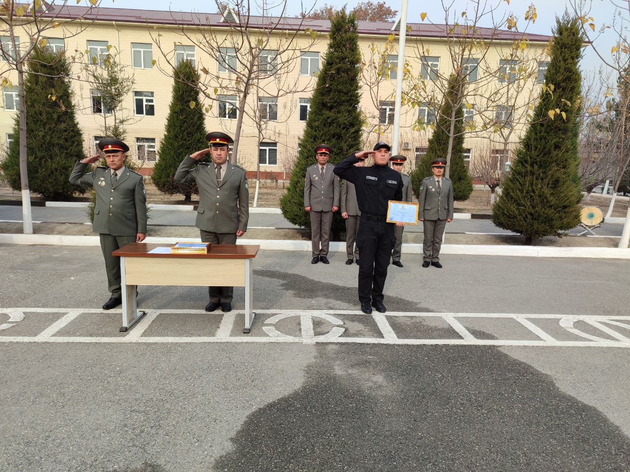 Shuningdek, o‘quv yig‘ini davomida o‘zining namunali xulqi, tartib intizomi bilan safdoshlariga o‘rnak bo‘lgan, aʼlo baholarga o‘qigan, sport musobaqasida yaxshi natijaga erishgan tinglovchilar Faxriy yorliq hamda tashakkurnomalar bilan taqdirlandilar.