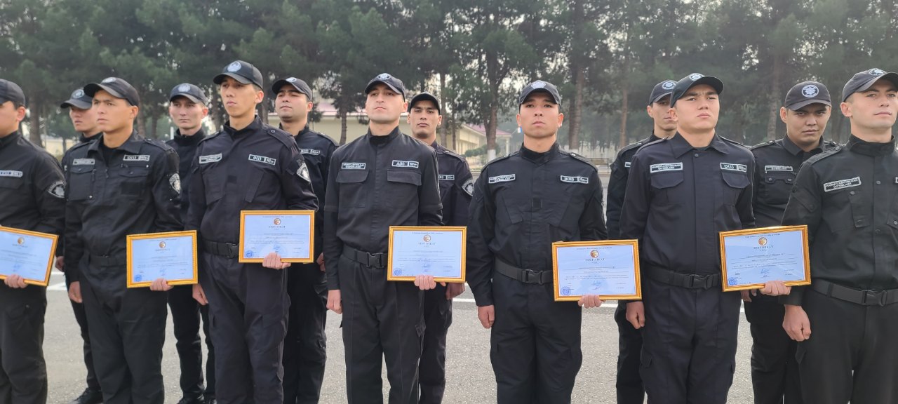 Qo‘riqlash bosh boshqarmasining harbiylashtirilgan qorovullik bo‘linmalarining 30 nafar nazoratchilari boshlang‘ich tayyorlash dasturi bo‘yicha hamda Milliy gvardiya Patrullik otryadlarining 20 nafar harbiy xizmatchilari malaka oshirish o‘quv dasturi bo‘yicha navbatdagi o‘quv kurslarini yakunlab o‘zlarining kasbiy tayyorgarlik yo‘nalishlaridagi bilim va ko‘nikmalarini mustahkamladilar. Joriy yilning 2 dekabr kuni o‘quv yig‘inini muvaffaqiyatli tamomlagan jami 50 nafar tinglovchilarga tantanali ravishda sertifikatlar topshirish marosimi bo‘lib o‘tdi.