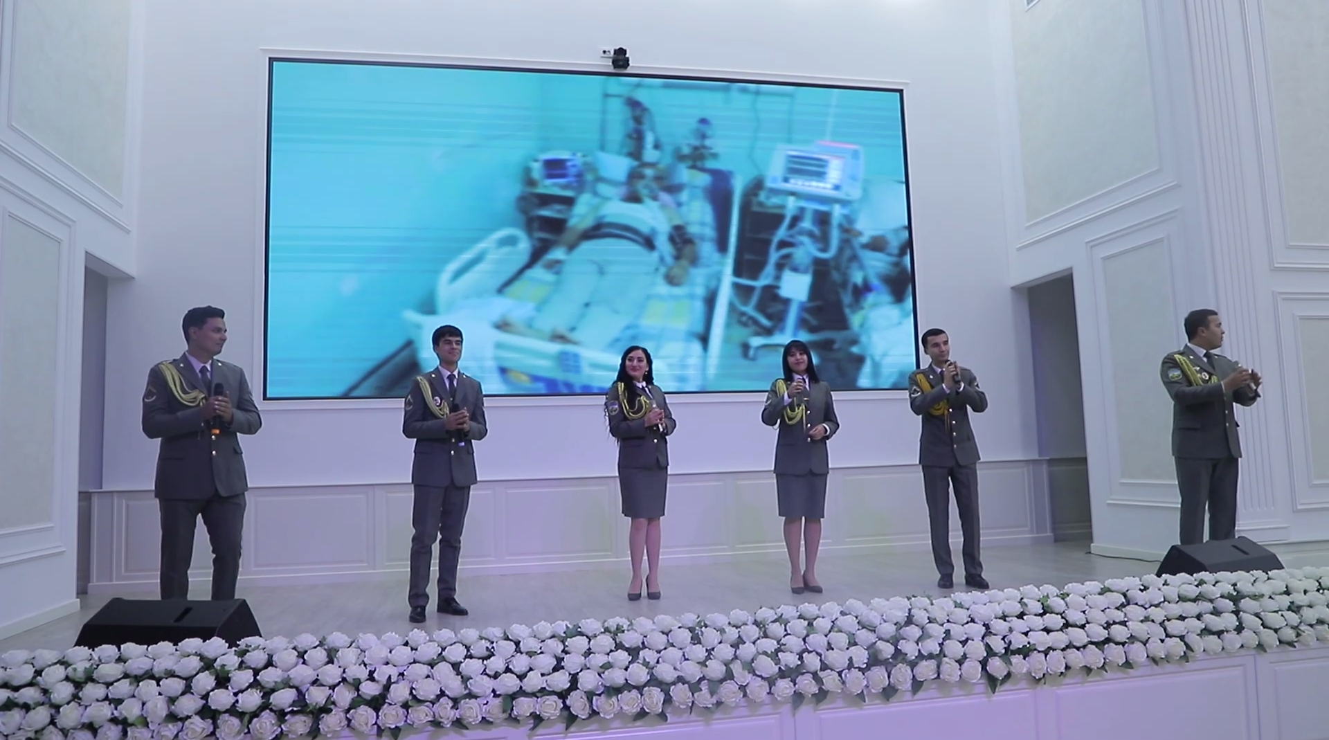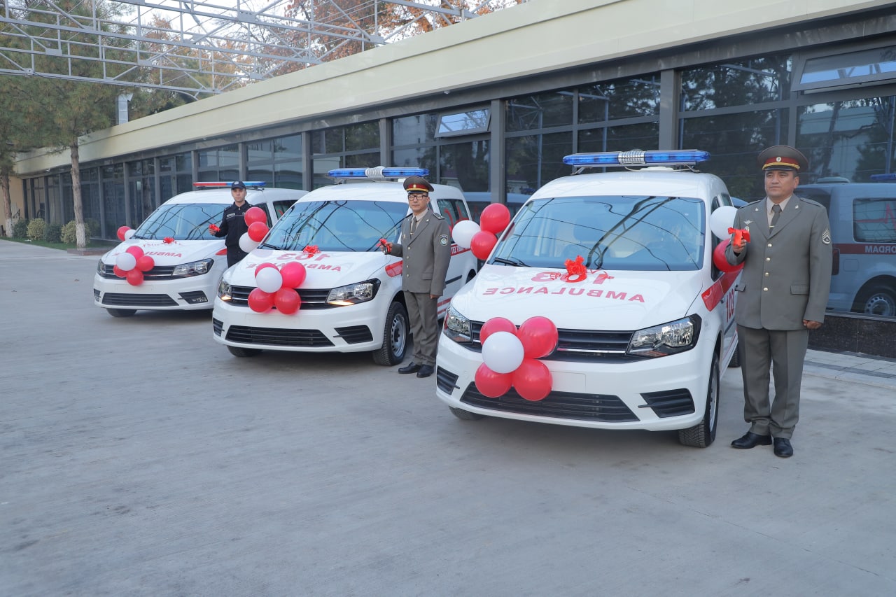 В торжественной обстановке были вручены ключи от специальных автомобилей «скорой помощи» руководителям трех медицинских пунктов Национальной гвардии.