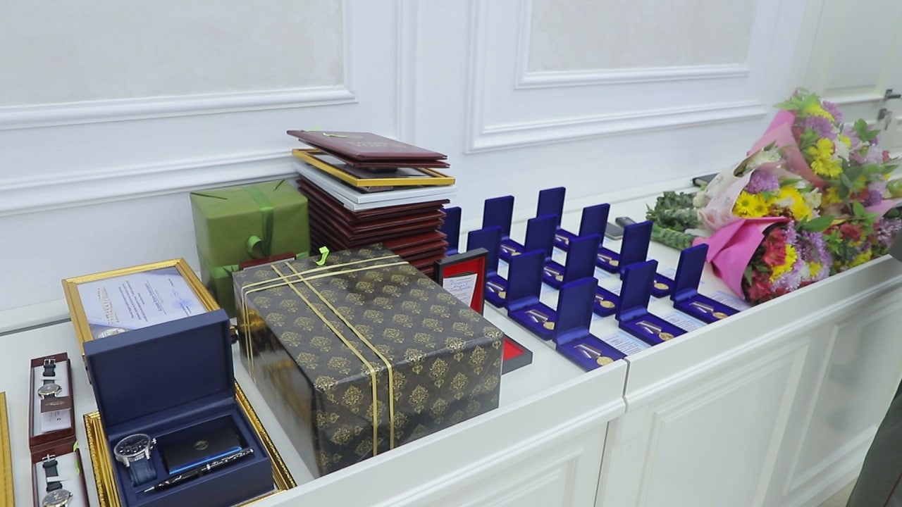 Затем ряду медицинских работников были вручены нагрудные знаки «Намунали хизматлари учун» II и III степеней, наручные часы, почетные грамоты и памятные подарки.