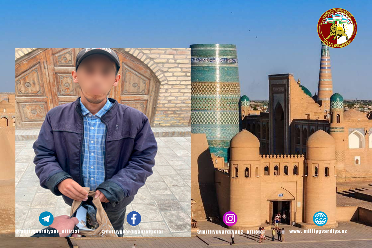 Утром 23 мая, примерно в 6.10 часов, при обходе территории, прилегающей к Государственному историко-архитектурному музею-заповеднику «Ичан-Кала», сотрудники отдела «Охрана» г. Хивы заметили молодого человека с сумкой. Пр...