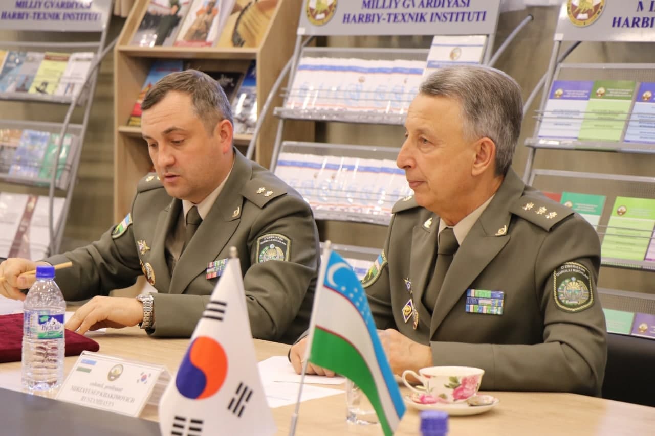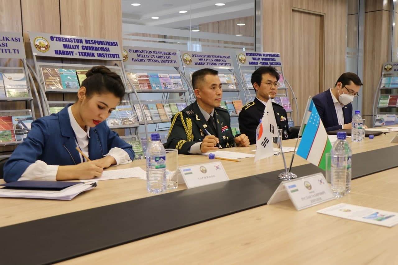 В частности, в целях развития двустороннего сотрудничества 17 февраля текущего года Управлением международного сотрудничества Национальной гвардии Республики Узбекистан организован визит корейской делегации в составе Военного атташе при Посольстве Республики Корея в Республике Узбекистан полковника Пак Ан Со и Консула – атташе полиции при Посольстве подполковника Ким Мун Чже в Военно-технический Институт Национальной гвардии.